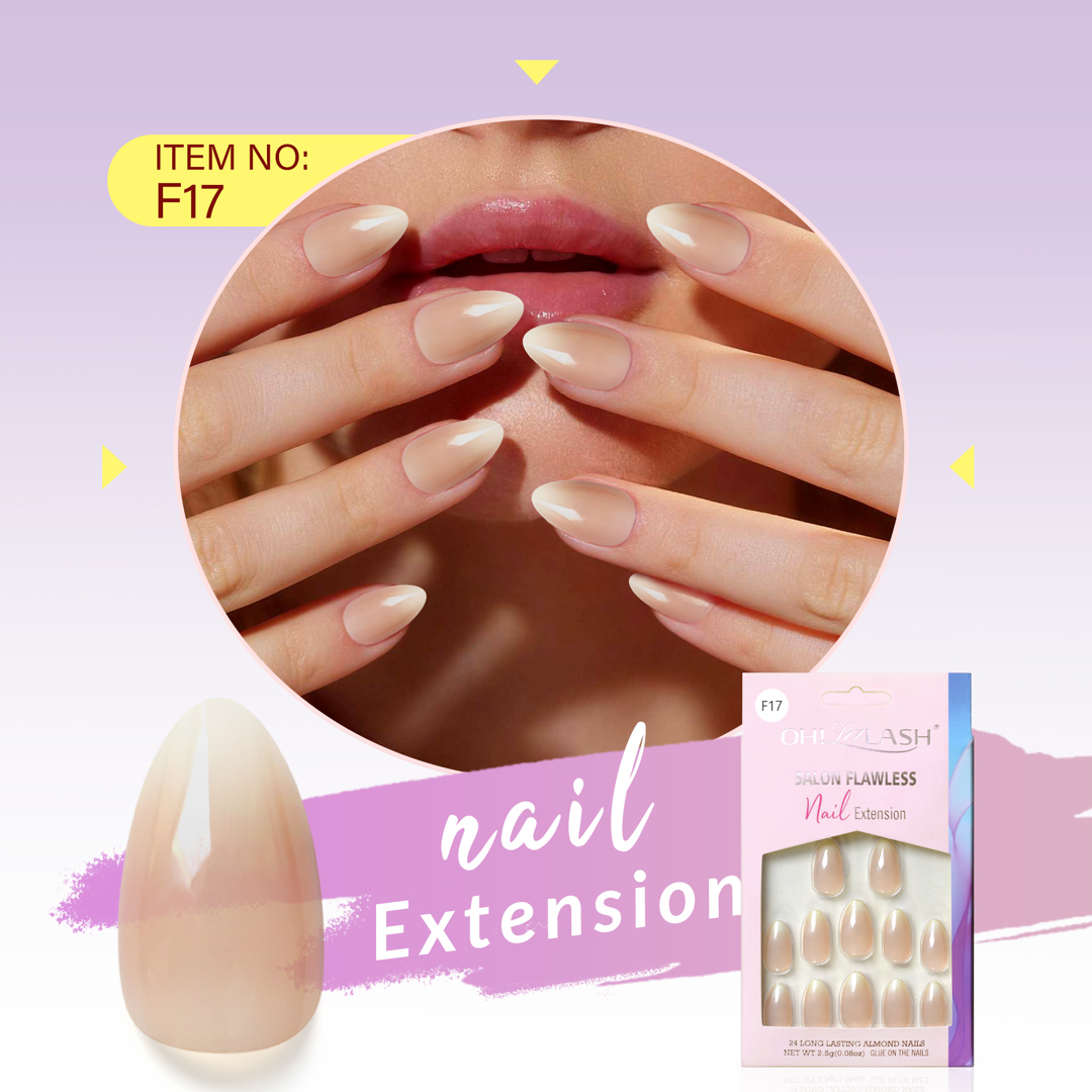 Let your fingers shine with OHLALASH Salon Flawless one step pressed Nail Set Nude Light Ombres! Unique natural skin beige nails with one round exciting golden glitter. Great for casual summer outfits,and give your office appeal a touch of irresistible charm! Try out this lovely false nail kit today and feel more special than ever before.