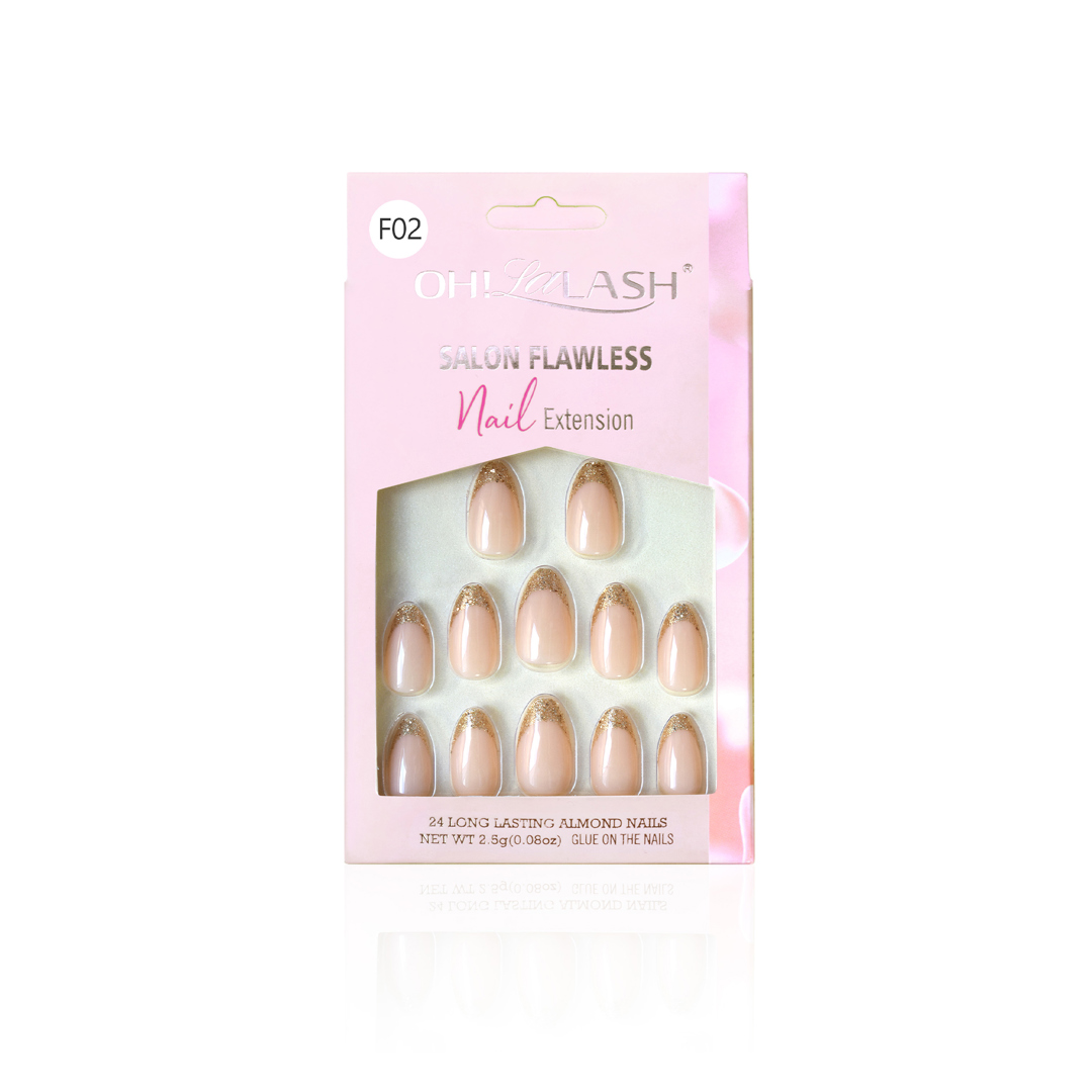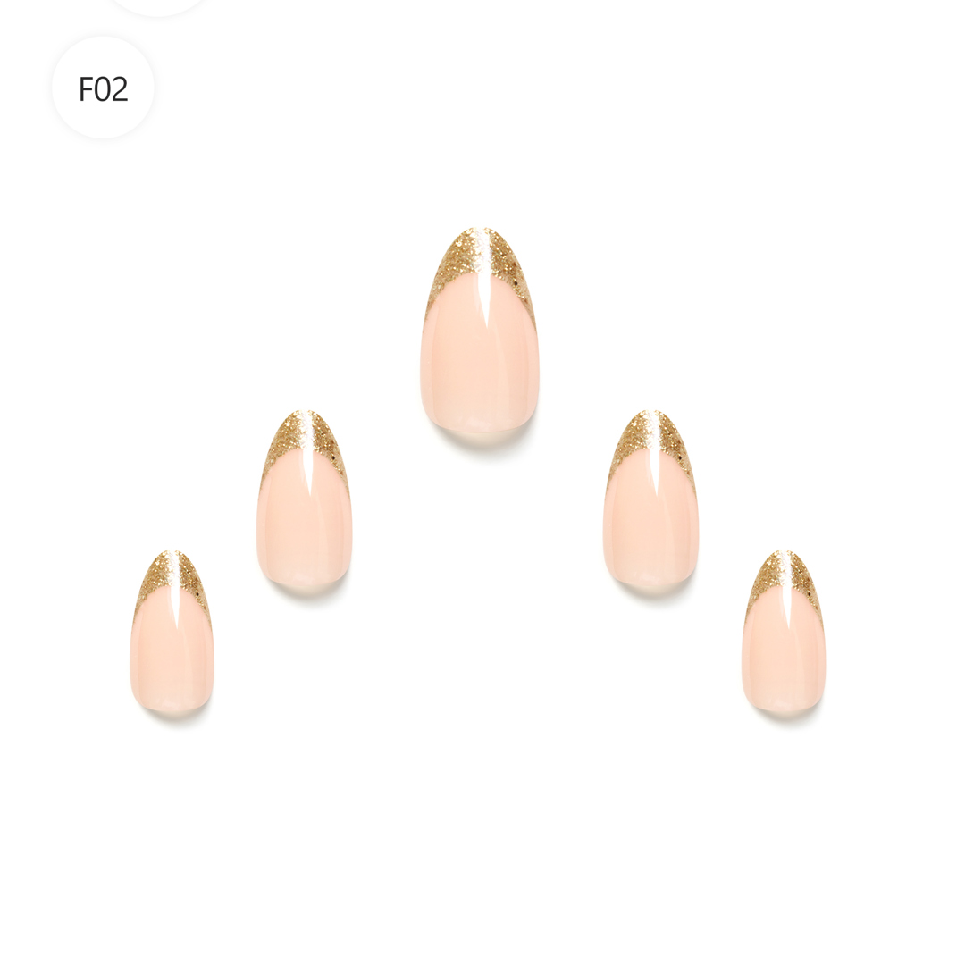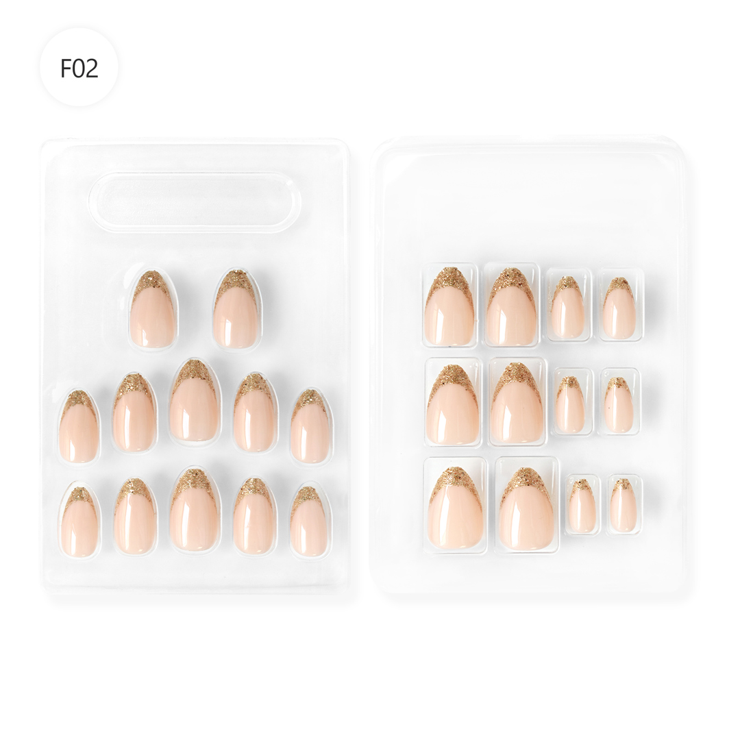 F02 - 24 pieces glossy one step pressed nail set in natural beige color