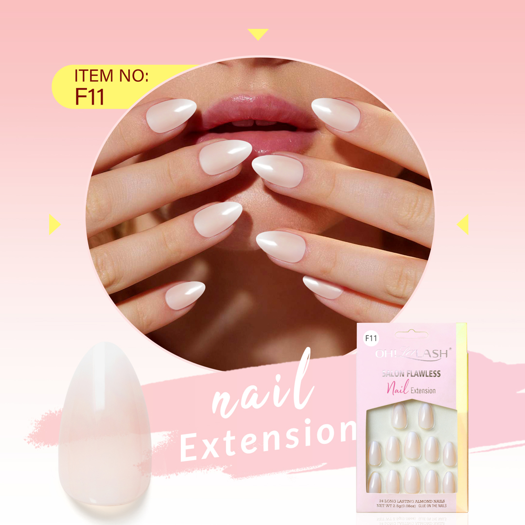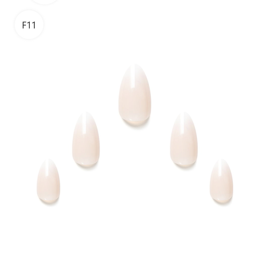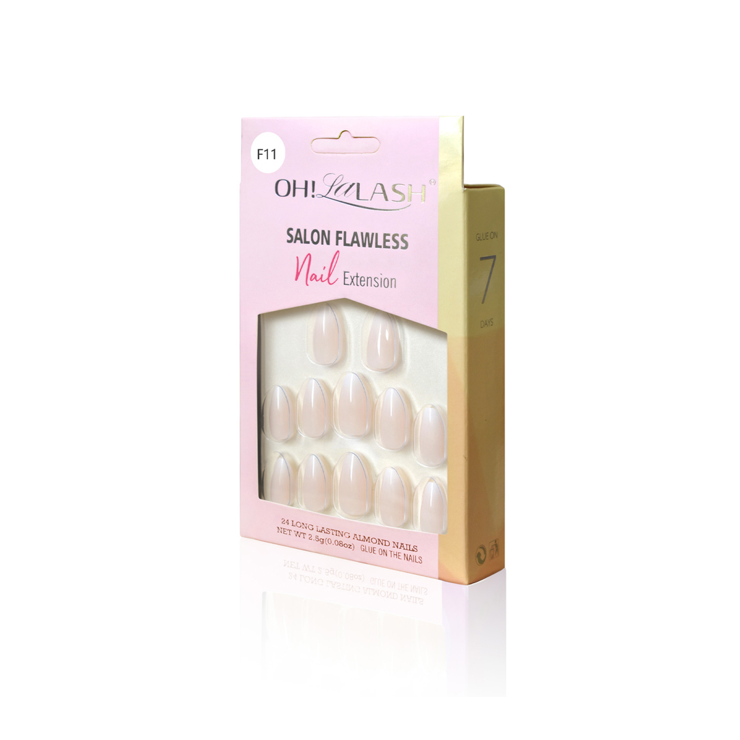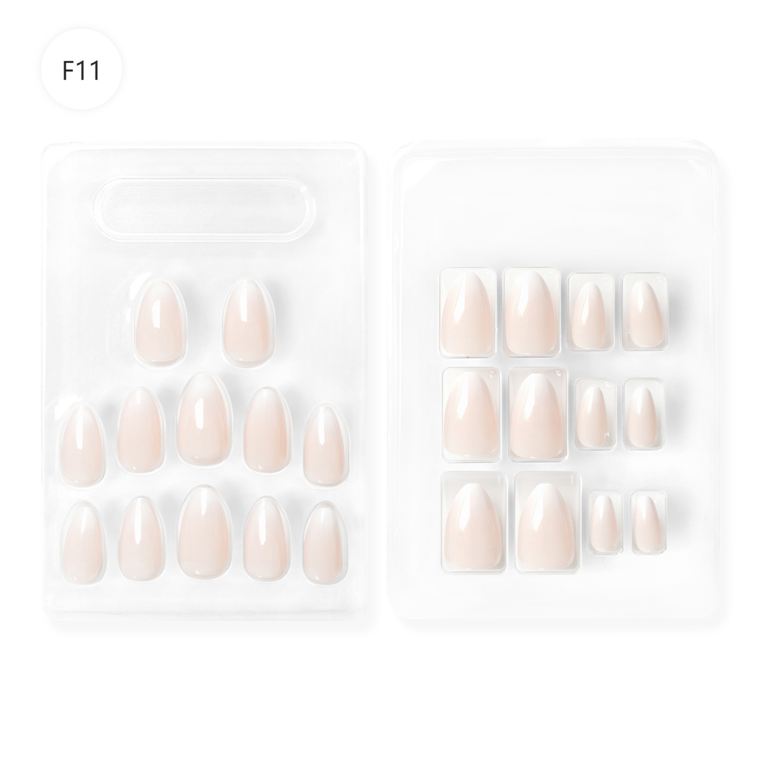 F11 - Introducing our lovely medium length salon gel press-on coffin French nails, designed to give you a beautiful artificial effect. Enjoy the elegance and convenience of these stunning nails!