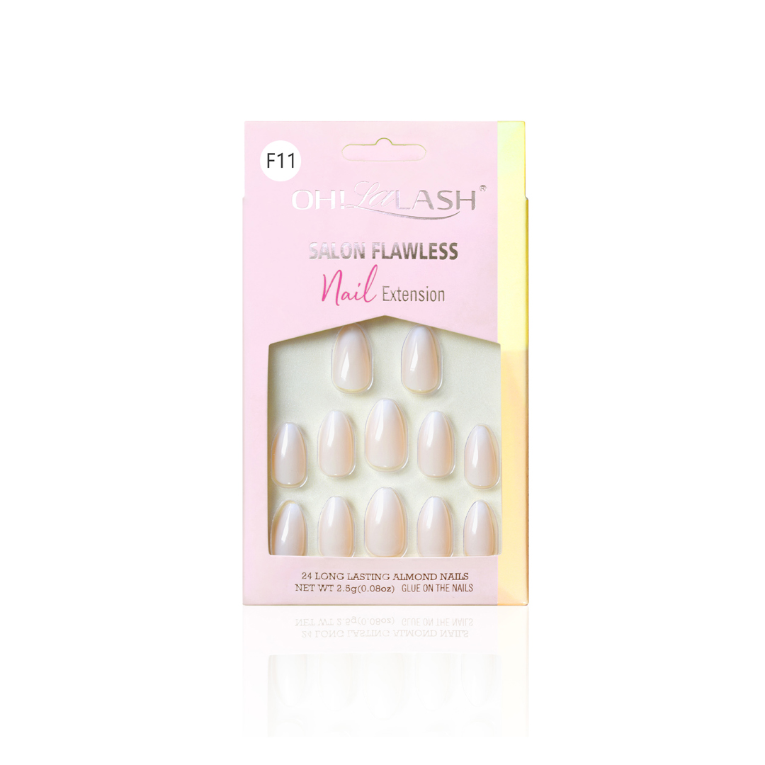 Let your fingers shine with OHLALASH Salon Flawless one step pressed Nail Set Nude Light Ombres! Unique natural skin beige nails with one round exciting golden glitter. Great for casual summer outfits,and give your office appeal a touch of irresistible charm! Try out this lovely false nail kit today and feel more special than ever before.