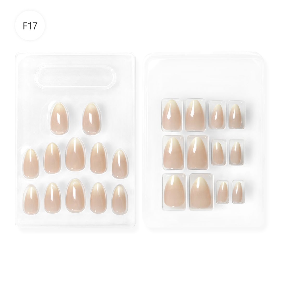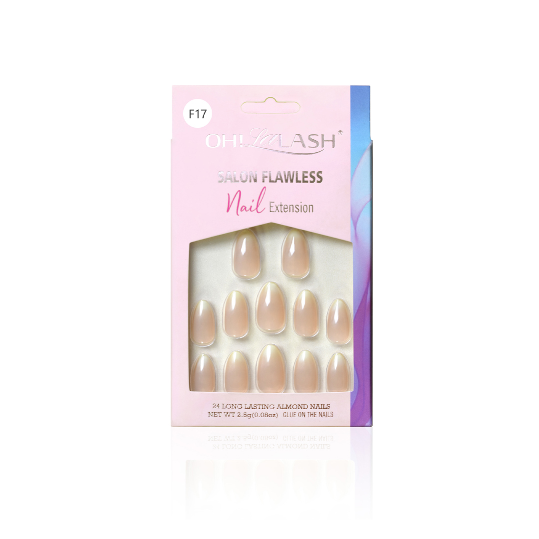 Let your fingers shine with OHLALASH Salon Flawless one step pressed Nail Set Nude Light Ombres! Unique natural skin beige nails with one round exciting golden glitter. Great for casual summer outfits,and give your office appeal a touch of irresistible charm! Try out this lovely false nail kit today and feel more special than ever before.