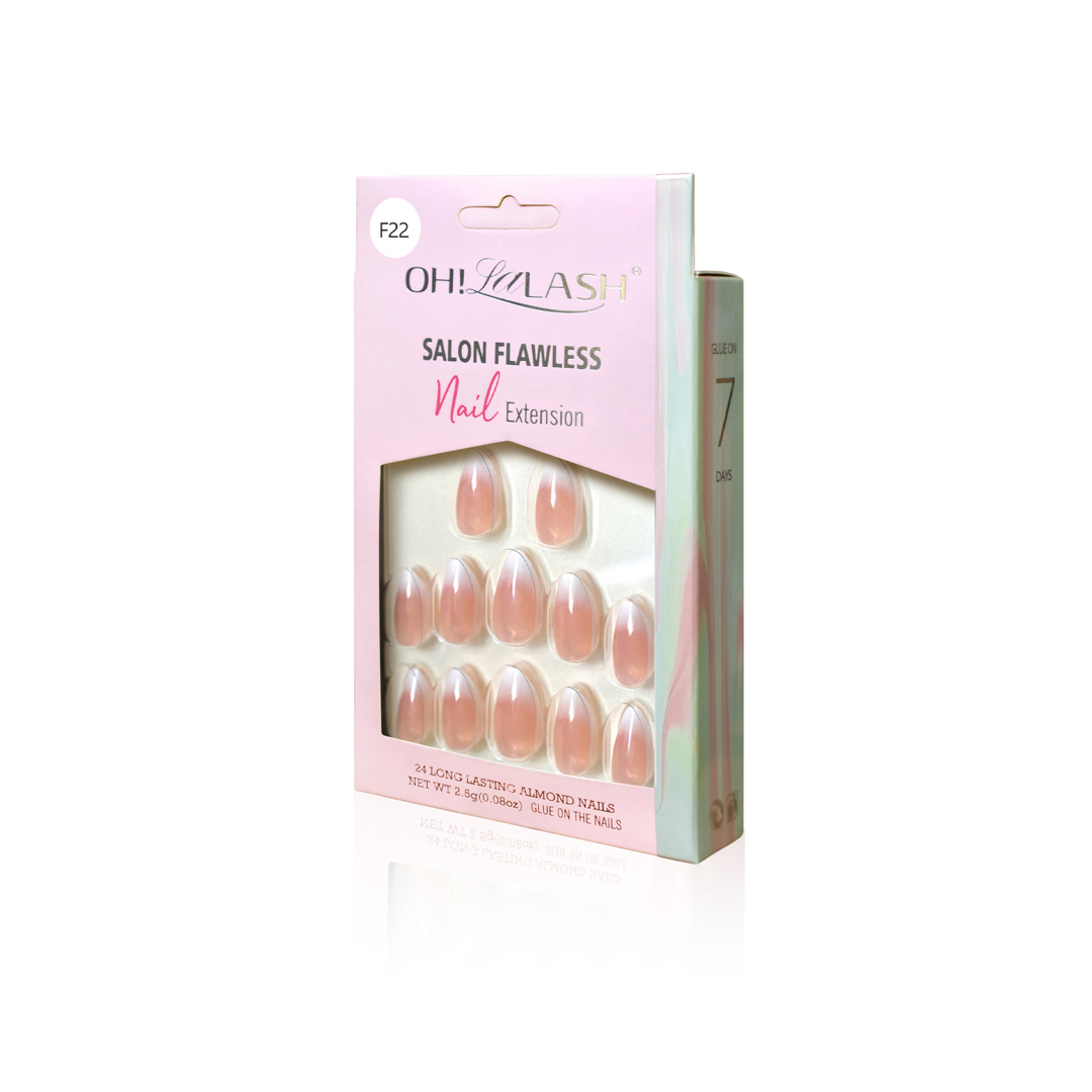 Let your fingers shine with OHLALASH Salon Flawless one step pressed Nail Set Nude Light Ombres! Unique natural skin beige nails with one round exciting golden glitter. Great for casual summer outfits,and give your office appeal a touch of irresistible charm! Try out this lovely false nail kit today and feel more special than ever before.