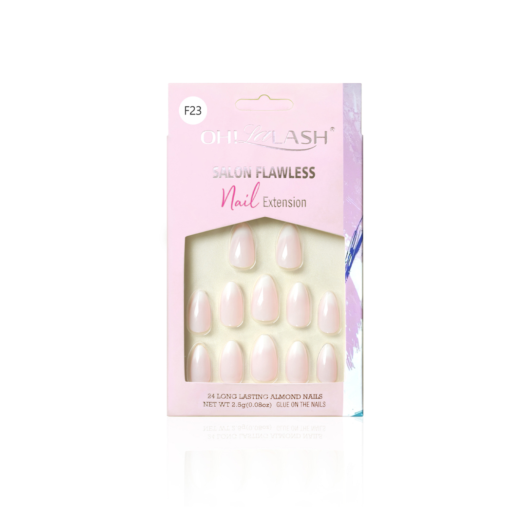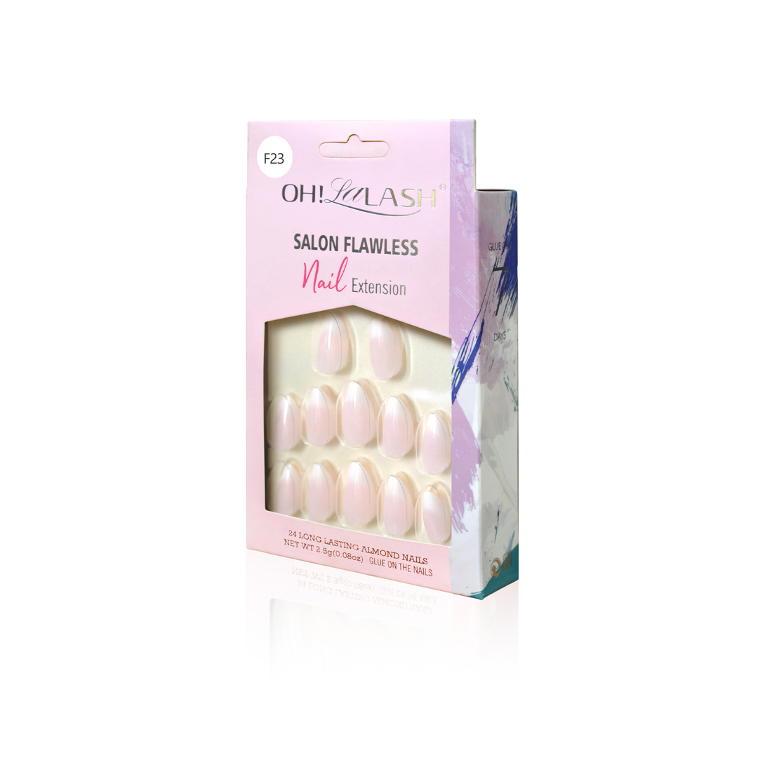 Let your fingers shine with OHLALASH Salon Flawless one step pressed Nail Set Nude Light Ombres! Unique natural skin beige nails with one round exciting golden glitter. Great for casual summer outfits,and give your office appeal a touch of irresistible charm! Try out this lovely false nail kit today and feel more special than ever before.