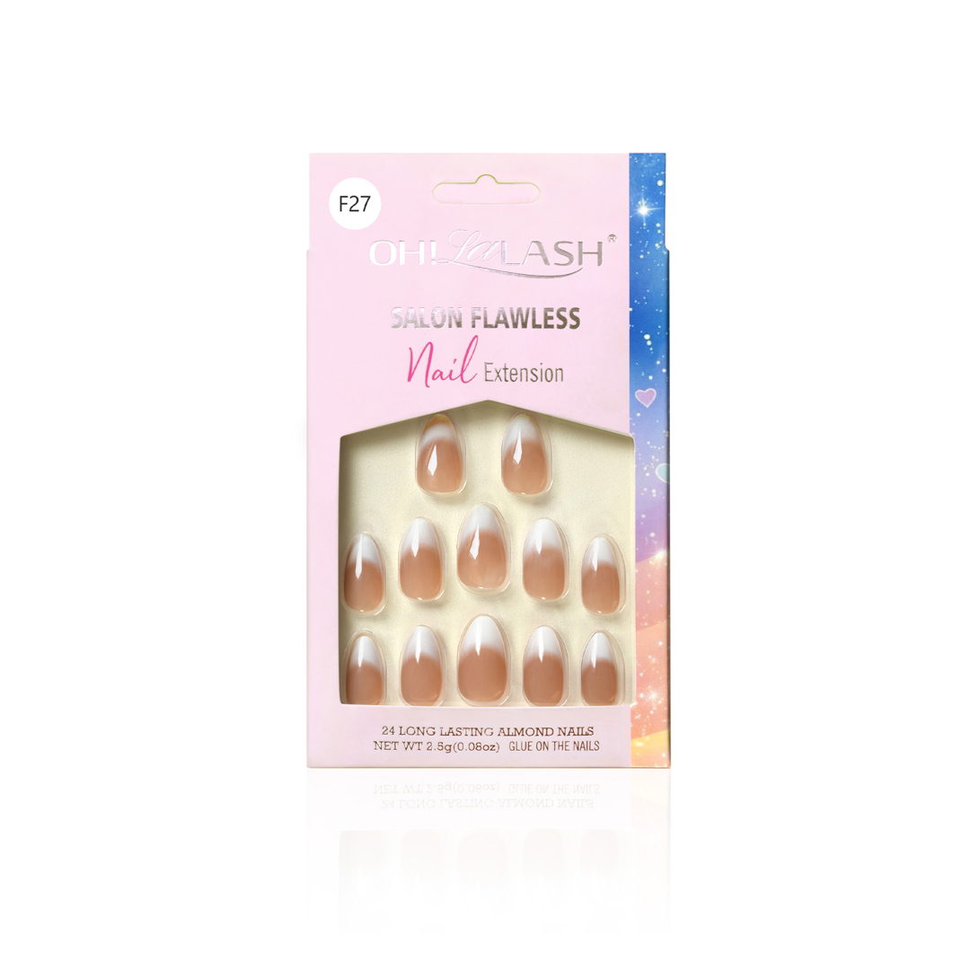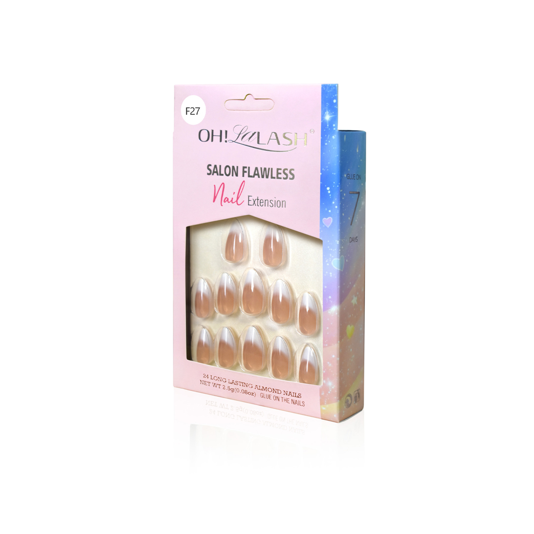 Let your fingers shine with OHLALASH Salon Flawless one step pressed Nail Set Nude Light Ombres! Unique natural skin beige nails with one round exciting golden glitter. Great for casual summer outfits,and give your office appeal a touch of irresistible charm! Try out this lovely false nail kit today and feel more special than ever before.