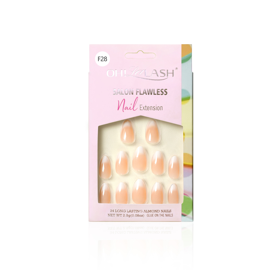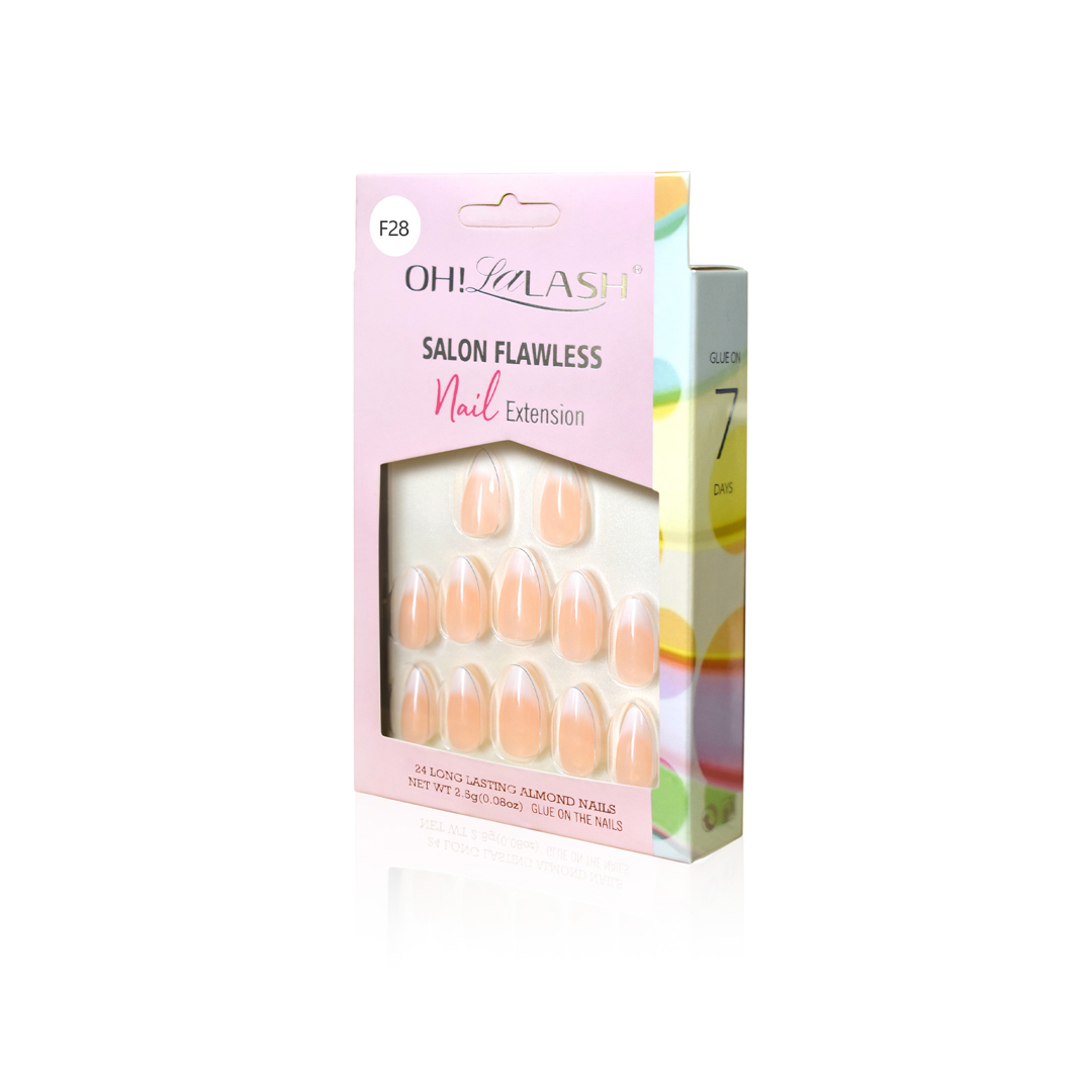 Let your fingers shine with OHLALASH Salon Flawless one step pressed Nail Set Nude Light Ombres! Unique natural skin beige nails with one round exciting golden glitter. Great for casual summer outfits,and give your office appeal a touch of irresistible charm! Try out this lovely false nail kit today and feel more special than ever before.
