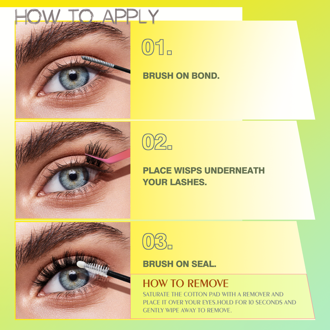 1-Super easy to apply; 2-No adhesive needed; 3-Blends seamlessly with your lash line;4-Vegan & Cruelty Free;5-Mess free;6-Lasts up to 5 days; 7-Perfect for on the go.