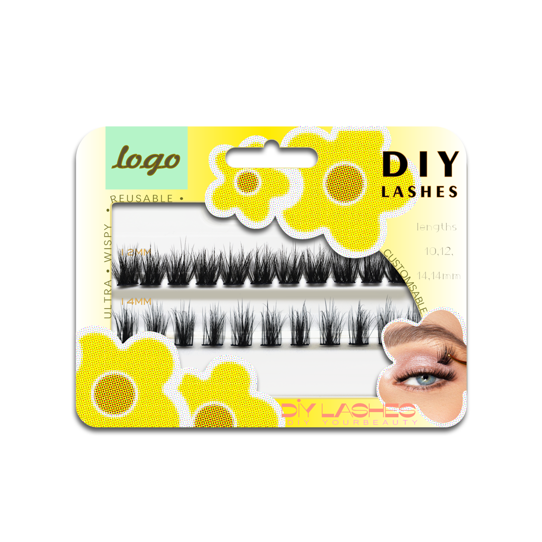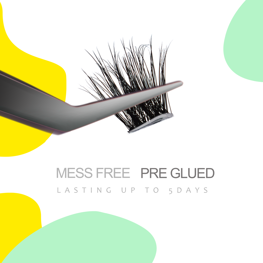 ID208 - Pre Bond Technology No Glue Needed Lashes Natural Look Self Adhesive Diy Segment Pre Cut Easy Eyelashes