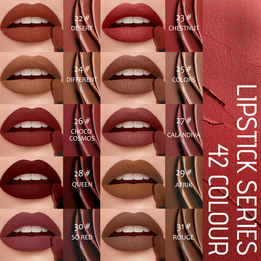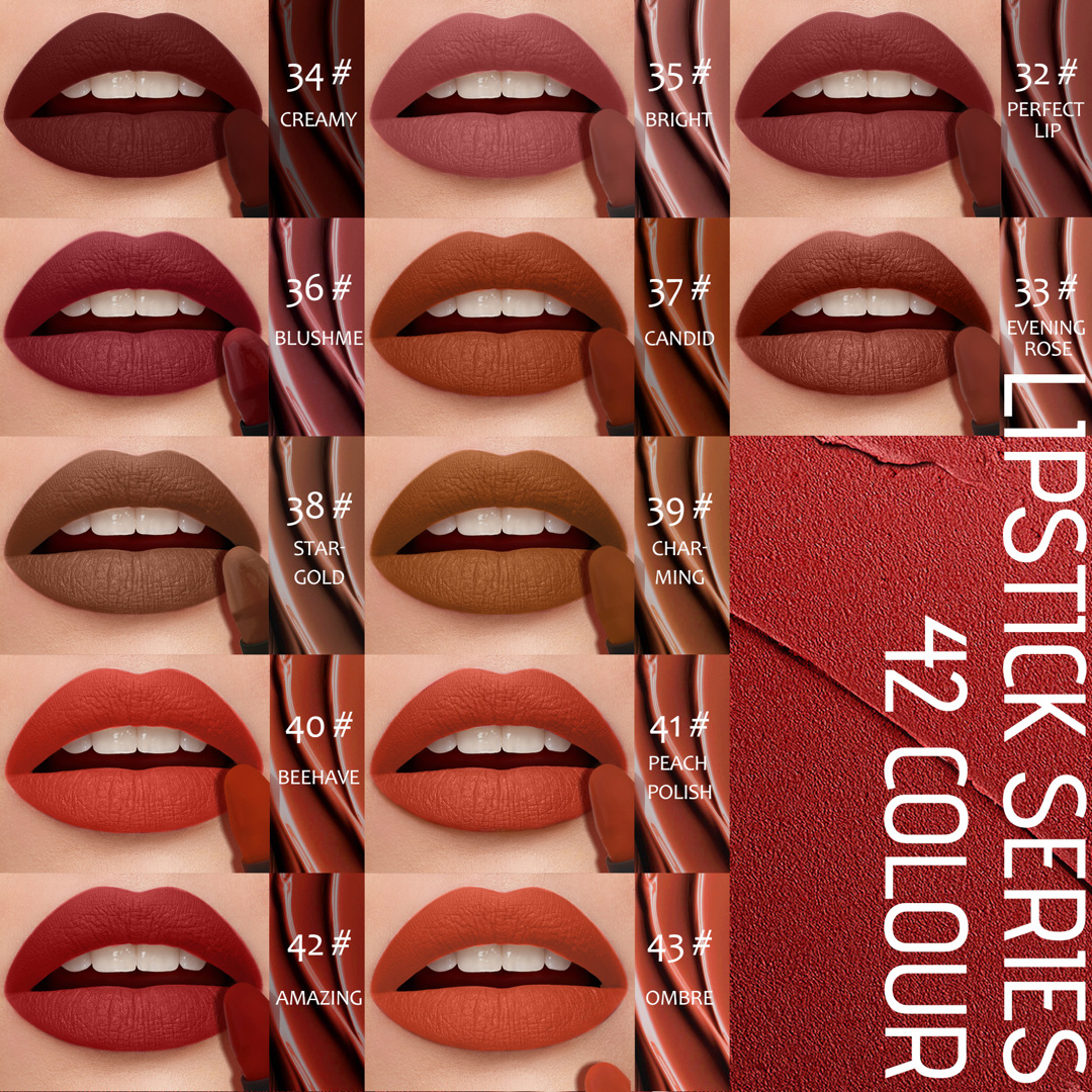 This lipstick offers exceptional color intensity with a silky, velvety-matte finish.Full coverage but super comfortable.This lipstick are designed to flatter every skin tone.