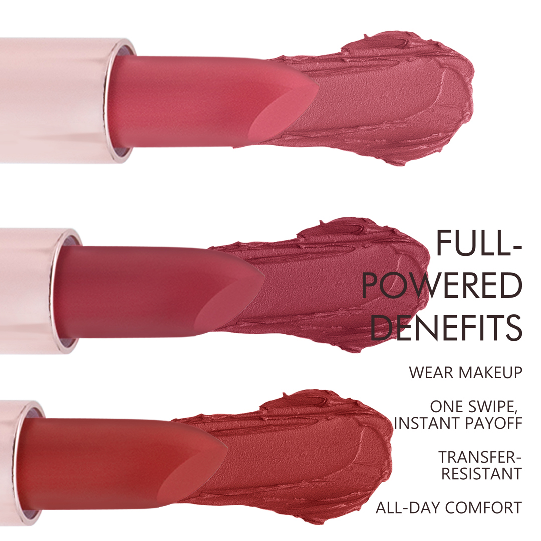 This lipstick offers exceptional color intensity with a silky, velvety-matte finish.Full coverage but super comfortable.This lipstick are designed to flatter every skin tone.